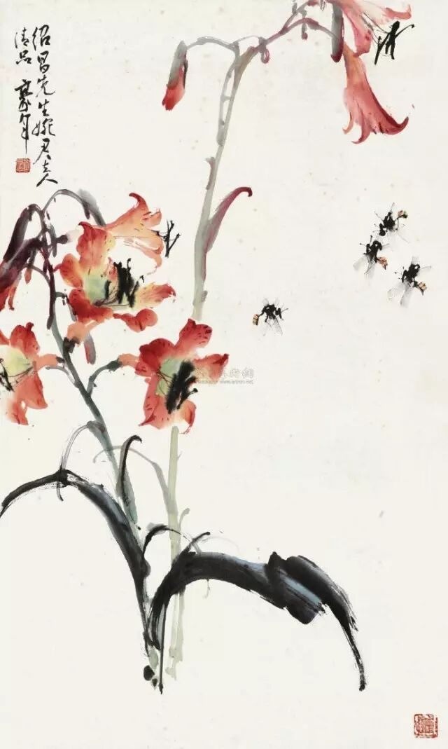 欧豪年 出生于广东.吴川.博铺,一九七零年定居台湾。当今台湾画坛第一人。欧豪年十七岁师从岭南画派巨擘赵少昂,力学精研,卓然自成大家,其绘画题材兼善画花鸟、山水、人物、畜兽,对书法与诗文亦多有研究,艺术成就多元而丰富
