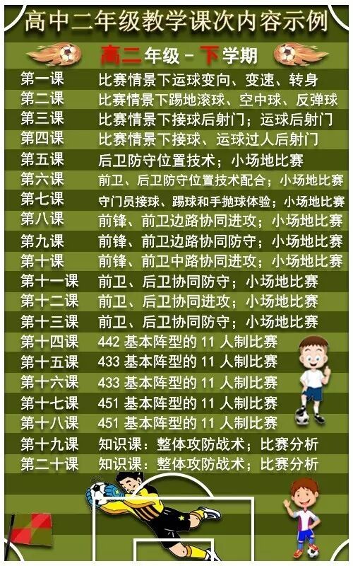 教育小新认为校园足球行业标准的制定十分重要,随着校园足球特色校每周一节足球课要求的落实,学校面临着教什么,怎么教的问题。制定一套完整的跨越义务教育阶段和高中阶段的足球课次内容标准十分必要。此标准将影响各学龄段足球技术衔接,进而影响学生足球技术规范性和完整性。