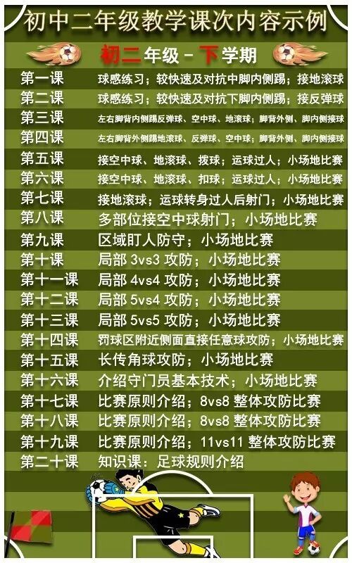 初中二年级校园足球教学基本要求