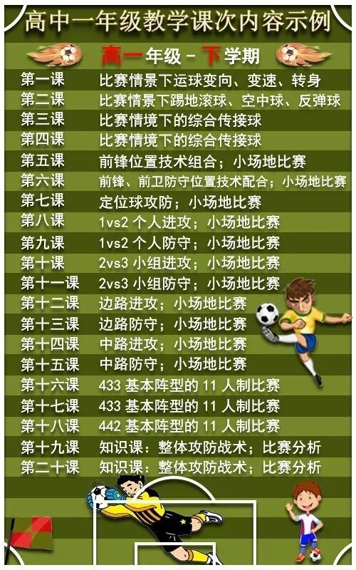 高中一年级校园足球教学基本要求